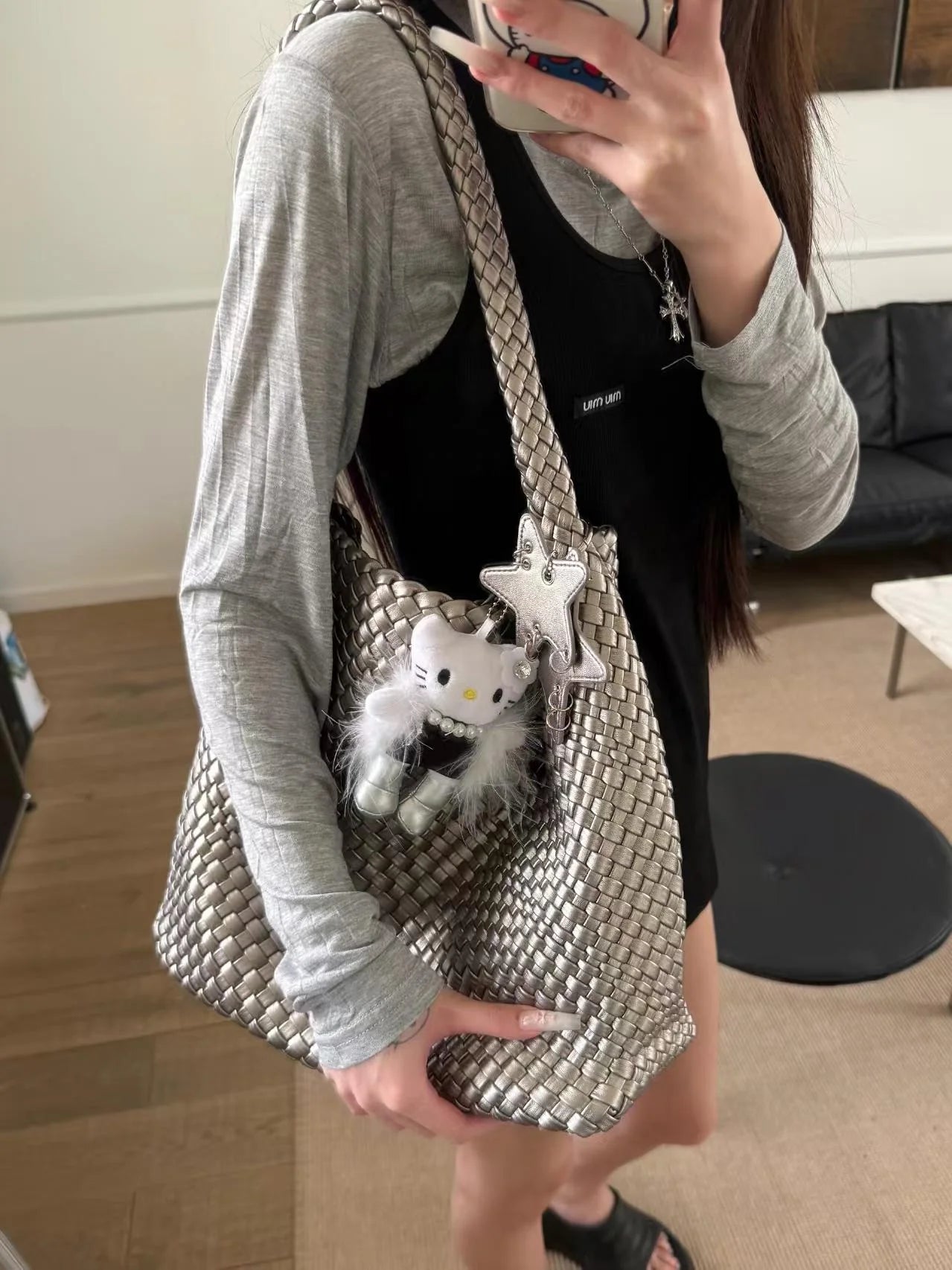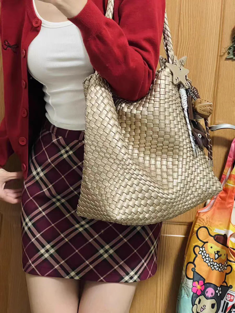 The Woven Bag is designed to move with you: soft, slouchy, and beautifully structured with a handwoven texture that catches the light. Complete with a matching inner pouch for easy organization and a playful star charm for a hint of personality, it’s the perfect everyday bag to elevate any outfit. Spacious, lightweight, and easy to carry from morning errands to evening plans.